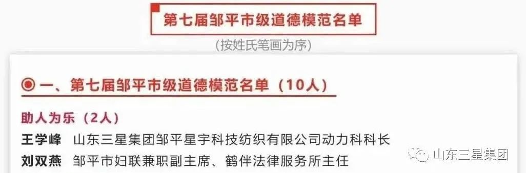 近期,第七屆鄒平市級道德模范及