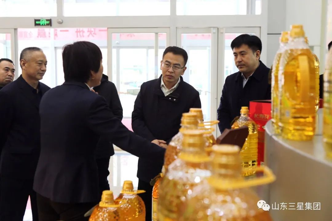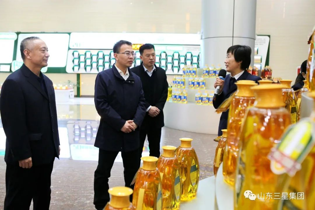 王明峰對李群一行的到來表示歡迎,并分享了企業(yè)在推進玉米精深加工、延展高端糧油產業(yè)鏈條等領域的實踐經驗和探索成果,就企業(yè)來年高端糧油產業(yè)發(fā)展規(guī)劃和戰(zhàn)略布局作詳細介紹。他表示,多年來,在各級黨委政府關心和支持下,山東三星集團搶抓機遇、主動作為,時刻不忘農業(yè)產業(yè)化龍頭企業(yè)責任擔當,在高端糧油產業(yè)化創(chuàng)新、規(guī)范化生產、專業(yè)化運營等領域持續(xù)發(fā)力。自主創(chuàng)新研發(fā)了長壽花濃香玉米油、長壽花零反式脂肪高養(yǎng)玉米油等一系列新型高端食用油產品,上市箸下“本釀造”系列調味品,著力豐富國民餐桌,健康國民生活;加速構建玉米油全產業(yè)鏈布局,全力提升農業(yè)綜合生產能力,助力推動農業(yè)增效農民增收;并深度參與“齊魯糧油”公眾品牌建設,強力拓展新型品牌營銷推廣渠道,致力打造核心競爭力更強、農業(yè)產業(yè)化帶動效益更明顯的優(yōu)質民族糧油品牌。王明峰還提到,新的一年,山東三星集團將立足自身稟賦優(yōu)勢,強化優(yōu)質渠道拓展及品牌價值提升,在深度融入新發(fā)展格局過程中展現(xiàn)新作為,為建設現(xiàn)代化富強文明新鄒平,促進農村經濟高質量發(fā)展貢獻新力量。