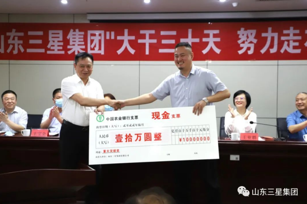 她強(qiáng)調(diào),山東三星集團(tuán)從600元起家,砥礪奮進(jìn)謀發(fā)展,一心一意惠民生,前進(jìn)的每一步,都離不開老一輩開拓者的創(chuàng)新實(shí)干,離不開每一位三星人的勤勉付出。站在新的發(fā)展起點(diǎn)上,全體干部員工當(dāng)以“越是艱險(xiǎn)越向前”的闖勁、“咬定青山不放松”的韌勁、“不破樓蘭終不還”的拼勁,以“大干三十天 一定走在前”的決心奔赴6月戰(zhàn)場,向各級黨委政府交出一份滿意的答卷,為建設(shè)更高水平富強(qiáng)濱州、開創(chuàng)現(xiàn)代化富強(qiáng)文明新鄒平建設(shè)新局面貢獻(xiàn)三星力量。