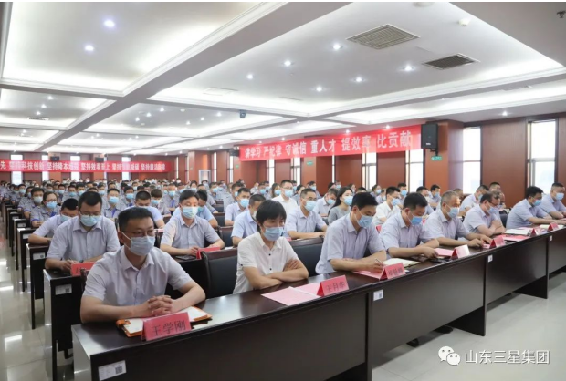 山東三星集團(tuán)黨總支書記、老董事長王明峰,董事長兼總裁王亞群,總經(jīng)理王明星,常務(wù)副總經(jīng)理王明亮及其他董事會成員,集團(tuán)機(jī)關(guān)各部室負(fù)責(zé)人;各生產(chǎn)經(jīng)營單位執(zhí)行經(jīng)理,生產(chǎn)、銷售負(fù)責(zé)人及各單位黨員、優(yōu)秀員工代表出席會議。會議由綜合管理部總監(jiān)韓延庭主持。