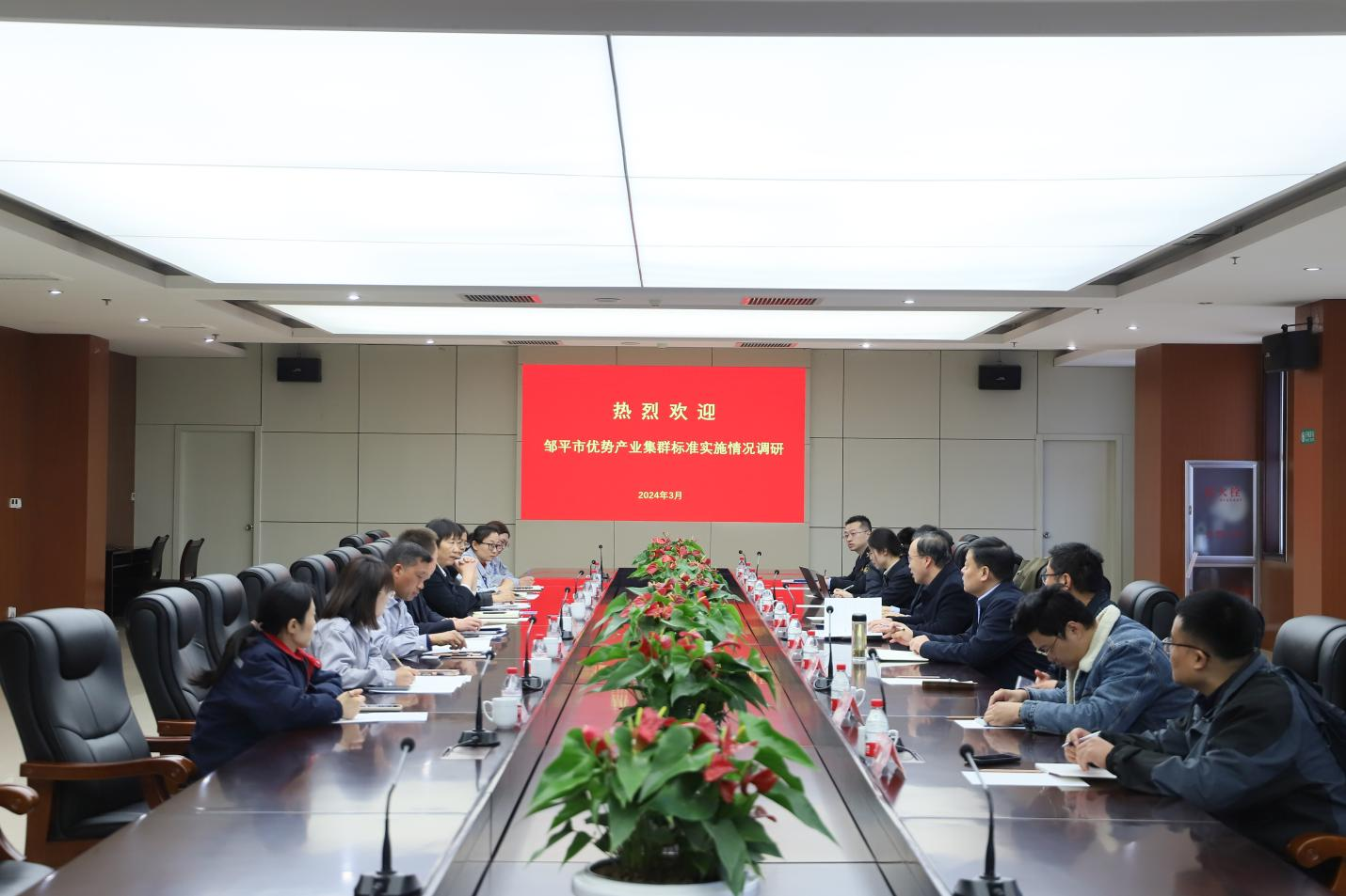 3月20日,鄒平市市場監(jiān)管局黨組書記、局長楊春,山東省標準化研究院產(chǎn)業(yè)高質(zhì)量發(fā)展研究所所長孫玉亭一行就優(yōu)勢產(chǎn)業(yè)集群標準實施情況來山東三星集團調(diào)研,山東三星集團副總經(jīng)理韓延庭、技術(shù)總監(jiān)王月華接待調(diào)研領(lǐng)導(dǎo)一行。