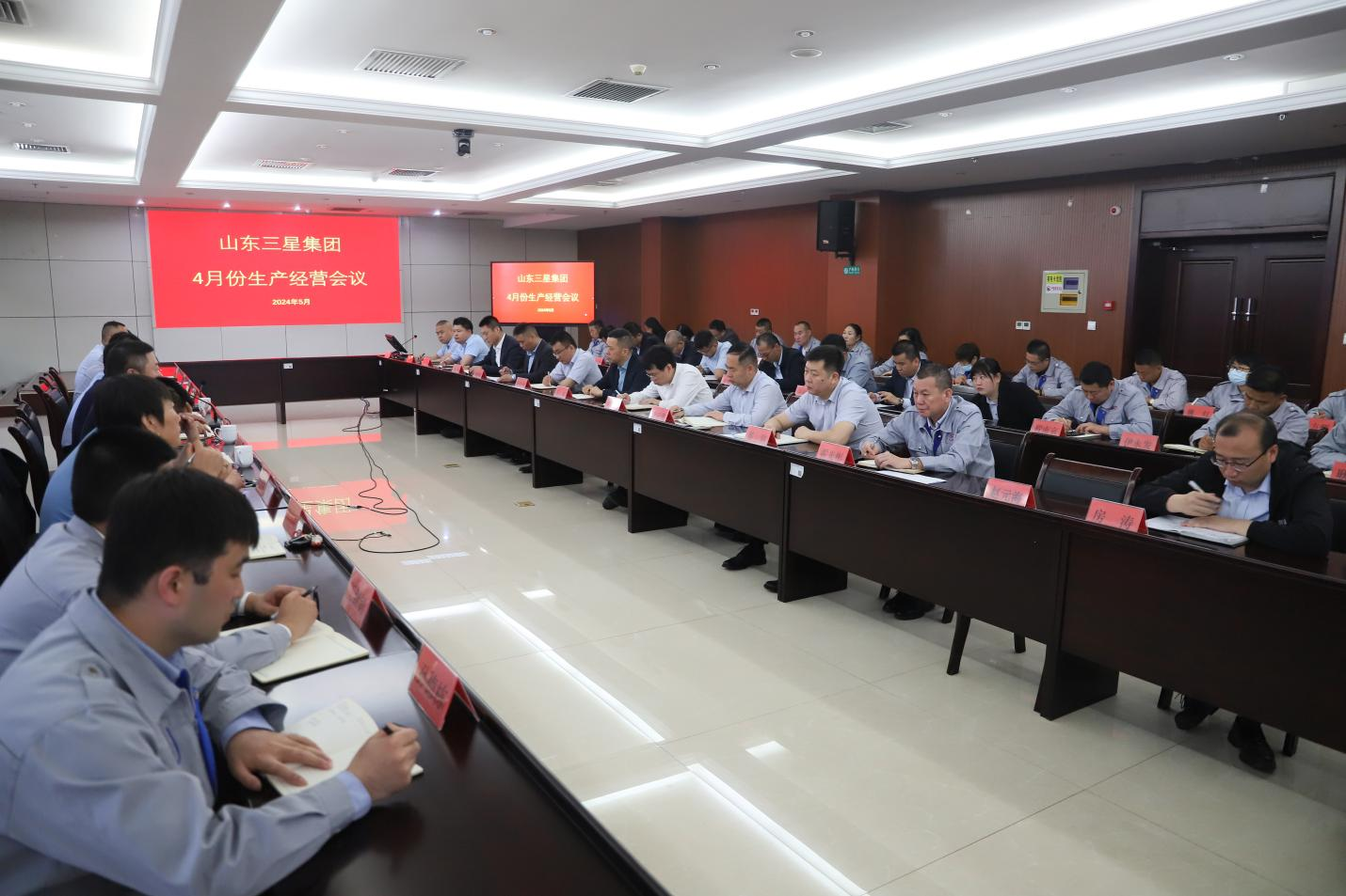 為總結(jié)分析四月份生產(chǎn)經(jīng)營情況,安排部署五月份重點工作,5月5日,山東三星集團召開四月份生產(chǎn)經(jīng)營暨五月份工作部署會,集團董事會成員,集團相關(guān)職能部室負責人,各分公司執(zhí)行經(jīng)理及生產(chǎn)、銷售、行政、儲運等主要負責人參加會議,駐外公司以視頻會議形式參會。