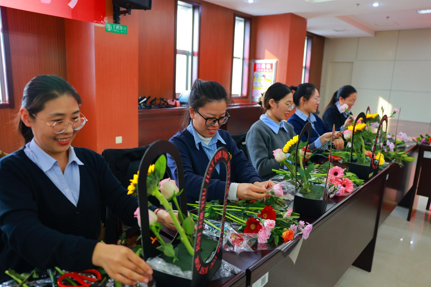 活動(dòng)現(xiàn)場(chǎng),專(zhuān)業(yè)花藝?yán)蠋煘榇蠹以敿?xì)講解了花卉知識(shí)、插花技巧和藝術(shù)構(gòu)圖。女員工們聽(tīng)得津津有味,從花材的選擇與處理,到色彩搭配和造型設(shè)計(jì),不時(shí)提出問(wèn)題,與花藝師積極互動(dòng)。