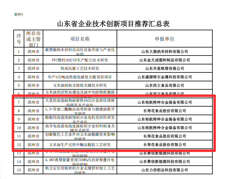 近日,山東省工業(yè)和信息化廳公布2025年山東省企業(yè)技術(shù)創(chuàng)新項目計劃(第一批),憑借深厚的技術(shù)積累與創(chuàng)新實力,山東三星集團旗下長壽花食品、裕航合金共六個項目成功入選,為企業(yè)創(chuàng)新發(fā)展注入強勁動能。