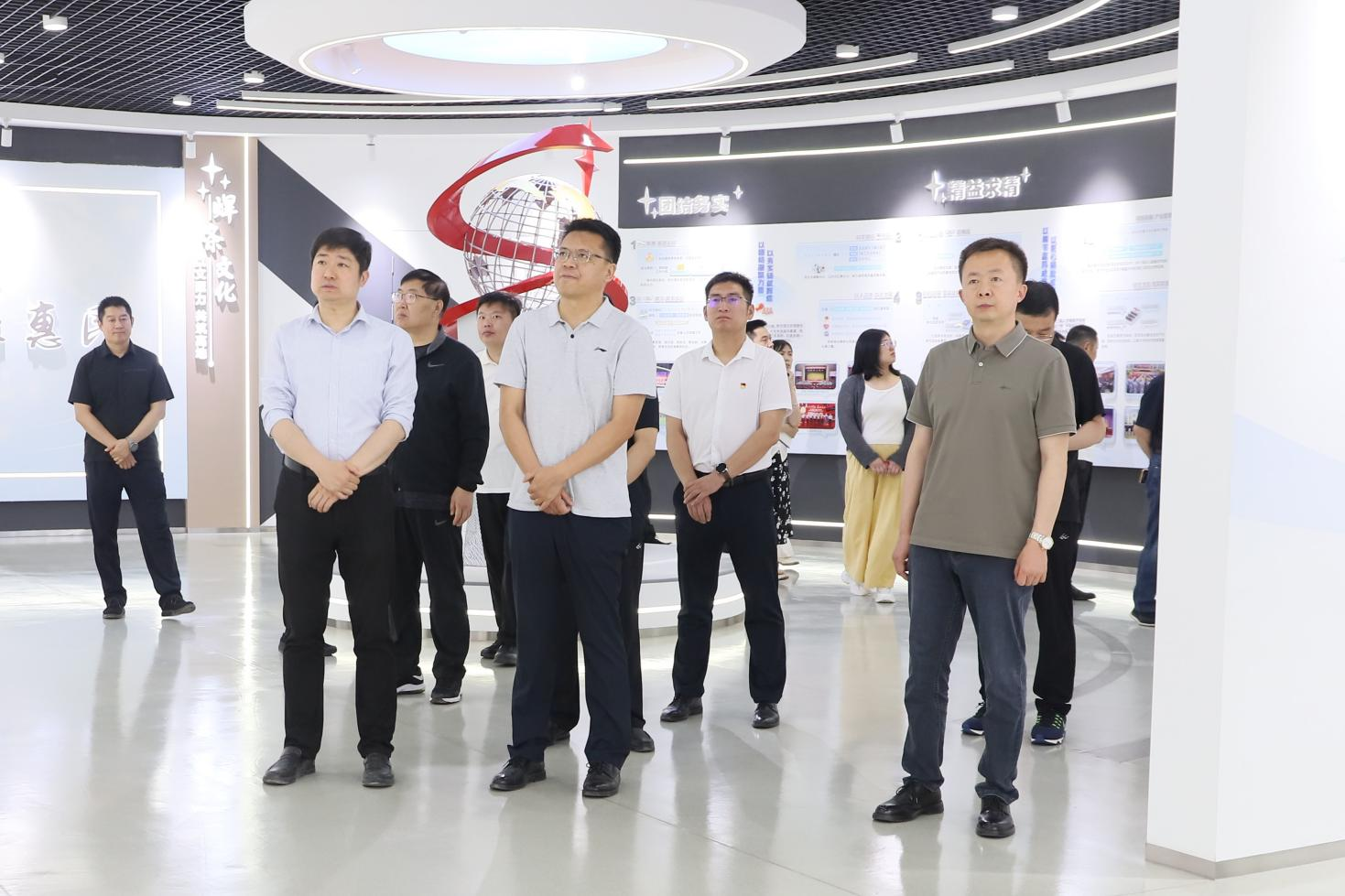 在集團(tuán)文化中心,領(lǐng)導(dǎo)們?cè)敿?xì)了解集團(tuán)發(fā)展脈絡(luò)和“健康廚房食品、高端鋁型材”兩大產(chǎn)業(yè)板塊生產(chǎn)經(jīng)營(yíng)情況,對(duì)企業(yè)產(chǎn)業(yè)布局、科技創(chuàng)新、品牌建設(shè)等方面給予了充分肯定。并重點(diǎn)聽(tīng)取了集團(tuán)“黨建引領(lǐng)產(chǎn)業(yè)升級(jí)”的實(shí)踐成果——推動(dòng)黨員技術(shù)骨干攻堅(jiān)關(guān)鍵核心技術(shù)、設(shè)立“黨員先鋒崗”激發(fā)隊(duì)伍活力等創(chuàng)新舉措,雙方就“以黨建促發(fā)展、以發(fā)展強(qiáng)黨建”的理念展開(kāi)深入交流。