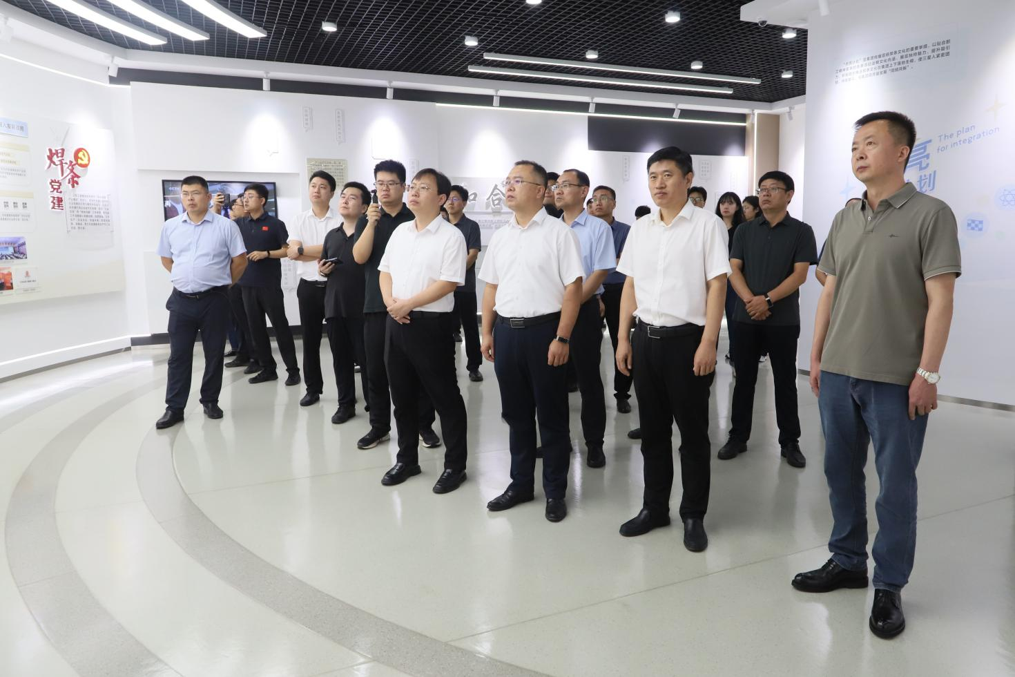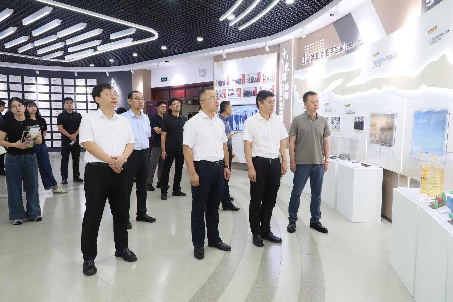 在集團文化中心,調(diào)研領導實地參觀了企業(yè)發(fā)展歷程、主導產(chǎn)業(yè)及黨建文化展區(qū),認真聽取了企業(yè)提煉黨建工作理念、熔鑄特色黨建品牌、打造黨建文化陣地的情況介紹,真切感受到企業(yè)“焊條黨建”品牌和“五融雙強”工作體系的強大紅色內(nèi)核。