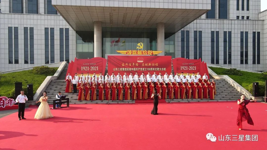 為慶祝中國(guó)共產(chǎn)黨成立100周年,深化黨史學(xué)習(xí)教育和企業(yè)精神文明建設(shè),進(jìn)一步激發(fā)廣大干部員工愛(ài)黨愛(ài)國(guó)熱情,賡續(xù)共產(chǎn)黨員精神血脈,弘揚(yáng)愛(ài)崗敬業(yè)實(shí)干作風(fēng),6月26日,山東三星集團(tuán)唱紅歌、頌黨恩,學(xué)黨史、銘初心,組織開(kāi)展“奮斗百年路 啟航新征程”山東三星集團(tuán)慶祝中國(guó)共產(chǎn)黨成立100周年紅歌大合唱活動(dòng),用嘹亮歌聲表達(dá)對(duì)黨的無(wú)限敬仰,抒發(fā)對(duì)祖國(guó)的無(wú)限熱愛(ài)。