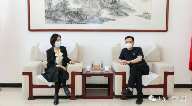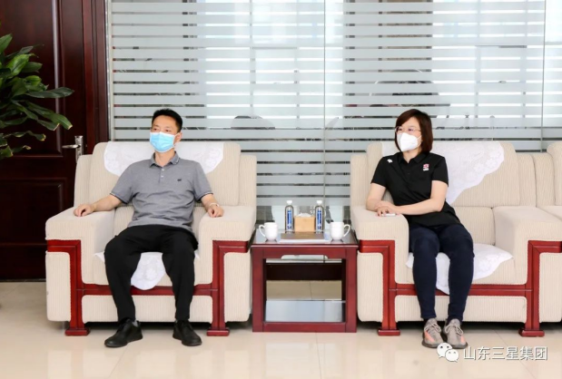 4月10日,鄒平市委常委、統(tǒng)戰(zhàn)部部長(zhǎng)張欣來(lái)山東三星集團(tuán)調(diào)研疫情防控及生產(chǎn)經(jīng)營(yíng)情況。韓店鎮(zhèn)黨委書記邢錦凱,鎮(zhèn)黨委宣傳委員、統(tǒng)戰(zhàn)委員李寧陪同調(diào)研。山東三星集團(tuán)董事長(zhǎng)、總裁王亞群,總經(jīng)理王明星、常務(wù)副總經(jīng)理王明亮參加調(diào)研座談。
