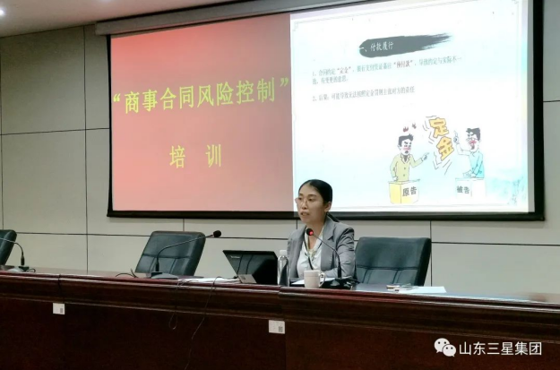 為進(jìn)一步規(guī)范合同管理流程及工作標(biāo)準(zhǔn),精細(xì)合同管理,增強(qiáng)員工法律意識,提升合同風(fēng)險(xiǎn)防范能力,5月4日,山東三星集團(tuán)舉辦商事合同風(fēng)控管理專題培訓(xùn)。山東三星集團(tuán)副總經(jīng)理張新穎,集團(tuán)法務(wù)部、供應(yīng)部,集團(tuán)各生產(chǎn)經(jīng)營單位執(zhí)行經(jīng)理、生產(chǎn)經(jīng)理及生產(chǎn)、供應(yīng)、設(shè)備等主要負(fù)責(zé)人、工作人員參加培訓(xùn)。