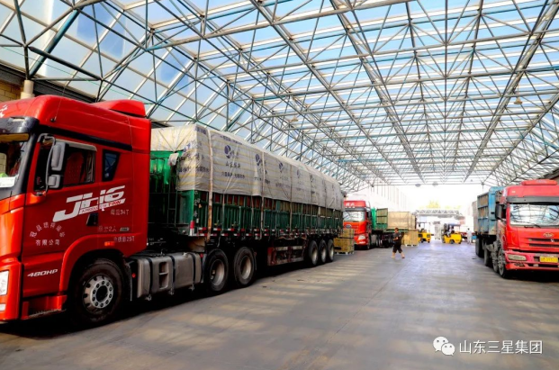 ▲來自各地的運(yùn)輸車輛正等待裝車,長壽花全系列產(chǎn)品由此馳往全國市場。