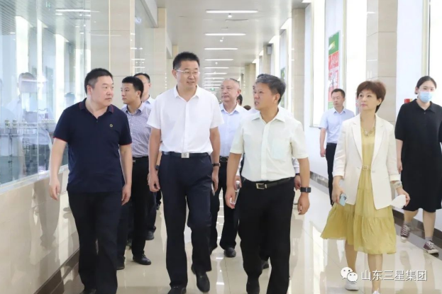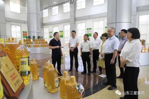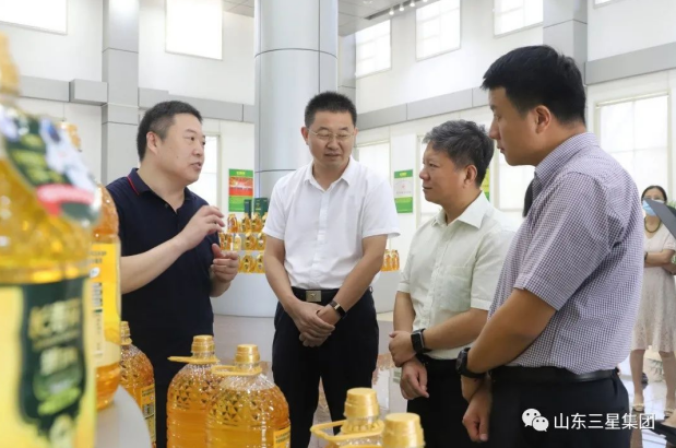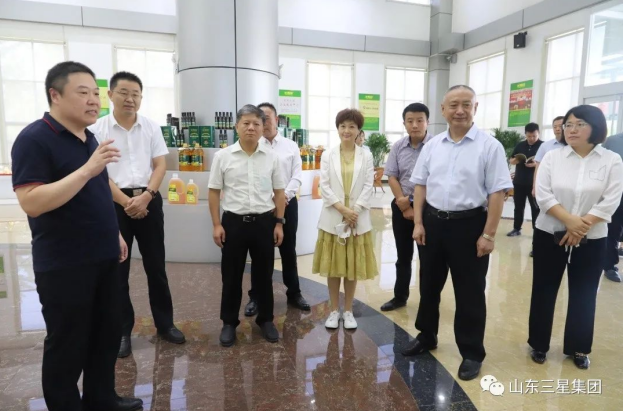 8月26日,山東省商務廳電子商務處處長朱希昕一行就2021年電子商務進農村綜合示范縣建設情況來山東三星集團參觀調研。濱州市商務局副縣級干部馬明哲,鄒平市委常委、宣傳部部長、副市長商獻文參加活動。山東三星集團黨總支書記王明峰、長壽花食品常務副總經理任在順接待調研領導一行。