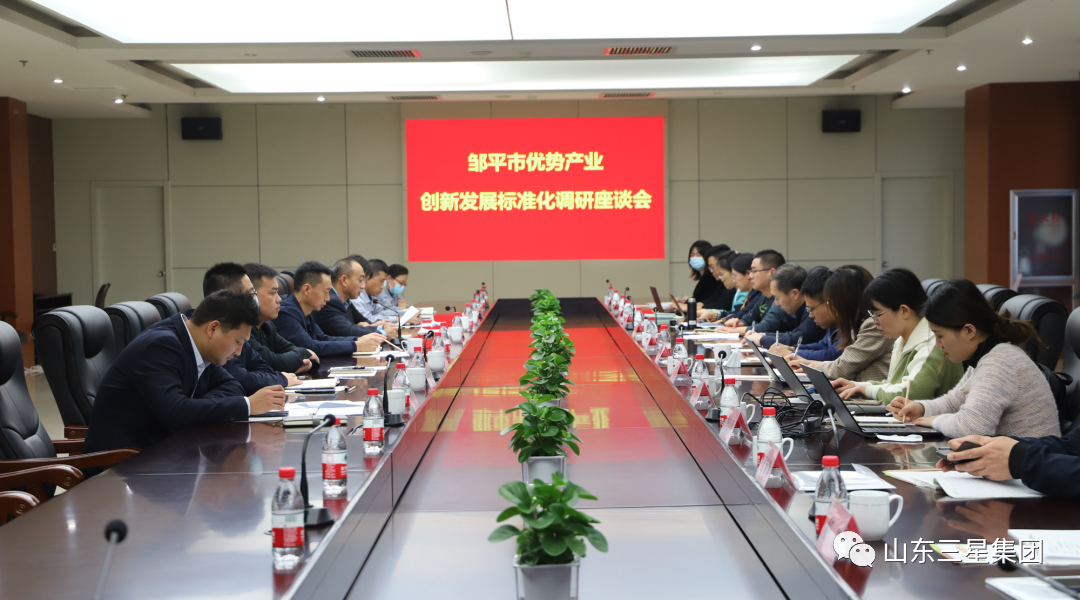 鄒平市市場監(jiān)督管理局黨組成員、副局長張超,中機(jī)生產(chǎn)力促進(jìn)中心院長助理、副所長辛明哲,山東省標(biāo)準(zhǔn)化研究院產(chǎn)業(yè)高質(zhì)量發(fā)展研究所所長孫玉亭等領(lǐng)導(dǎo);山東三星集團(tuán)常務(wù)副總經(jīng)理王明亮、集團(tuán)總經(jīng)理助理耿豹、企管部經(jīng)理程士警、規(guī)劃發(fā)展部總監(jiān)陳劍飛、長壽花食品技術(shù)總監(jiān)王月華、裕航合金公司技術(shù)總監(jiān)趙書鋒、機(jī)械公司技術(shù)總監(jiān)韓文來等參加調(diào)研座談。