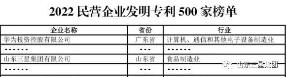 日前,全國工商聯(lián)發(fā)布“2022民營企業(yè)研發(fā)投入500家”“2022民營企業(yè)發(fā)明專利500家”雙榜單,山東三星集團(tuán)科研實力強(qiáng)勁、專利成果突出,成功入圍“2022民營企業(yè)發(fā)明專利500家”名錄。