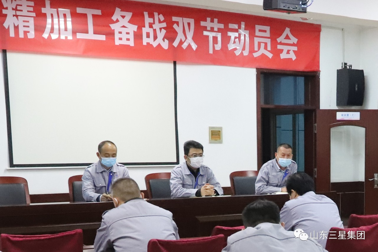 元旦春節(jié)雙節(jié)將近,為進(jìn)一步加大生產(chǎn)、提升效能,保質(zhì)保量完成全年任務(wù)目標(biāo),11月16日,長壽花食品精加工事業(yè)部召開備戰(zhàn)“雙節(jié)”動員大會。山東三星集團(tuán)企管部經(jīng)理程士警,長壽花食品副總經(jīng)理張恒、生產(chǎn)總監(jiān)霍光彬及公司生產(chǎn)、銷售、儲運、設(shè)備、安全部門負(fù)責(zé)人參加會議。