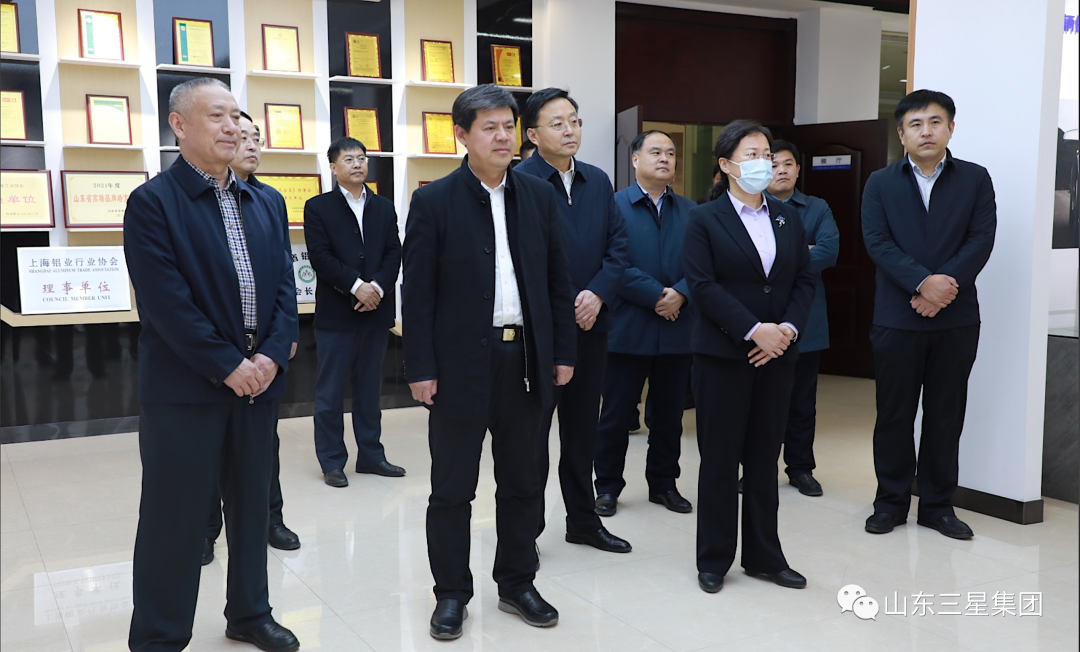 3月1日,濱州市委常委、常務副市長張偉,副市長畢志偉就工業(yè)經(jīng)濟及鋁產(chǎn)業(yè)鏈發(fā)展情況來山東三星集團調(diào)研。鄒平市委副書記、市長張謙,市委常委、副市長劉志峰,副市長李群陪同活動。山東三星集團黨總支書記王明峰、集團行政副總經(jīng)理韓延庭接待調(diào)研領導一行。