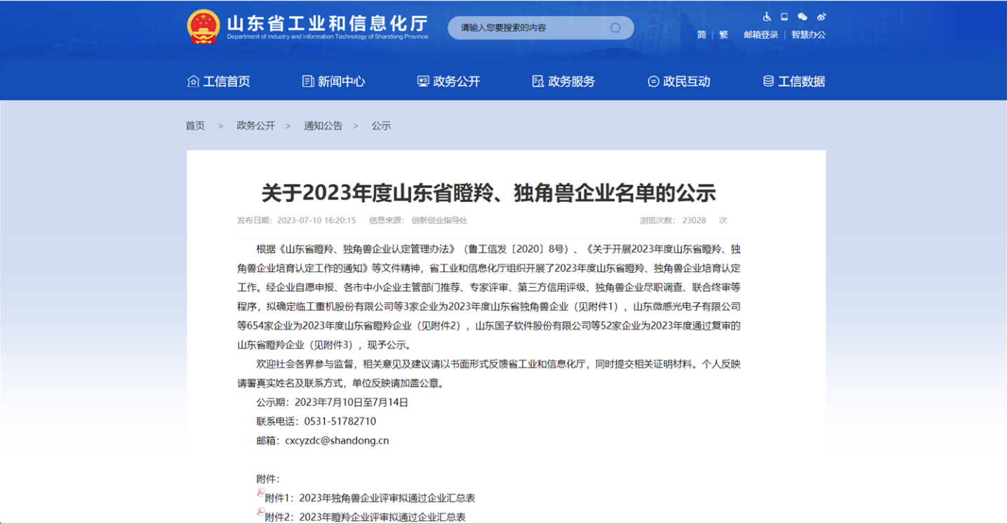 據(jù)悉,根據(jù)《山東省瞪羚、獨(dú)角獸企業(yè)認(rèn)定管理辦法》《關(guān)于開展2023年度山東省瞪羚、獨(dú)角獸企業(yè)培育認(rèn)定工作的通知》等文件精神,省工業(yè)和信息化廳組織開展了2023年度山東省瞪羚、獨(dú)角獸企業(yè)培育認(rèn)定工作。經(jīng)企業(yè)自愿申報(bào)、各市中小企業(yè)主管部門推薦、專家評(píng)審、第三方信用評(píng)級(jí)、聯(lián)合終審等程序,確定了2023年度山東省瞪羚、獨(dú)角獸企業(yè)名單。