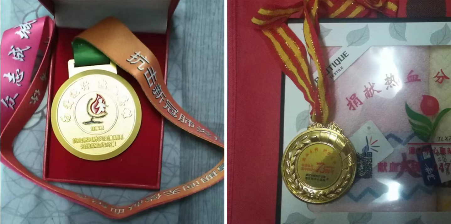 2019年新中國成立70周年之際,馬光海獲得通遼市獻(xiàn)血辦公室、通遼市中心血站“熱血先鋒 護(hù)佑生命”珍藏版紀(jì)念章;抗擊新冠肺炎疫情期間,他堅(jiān)持無償獻(xiàn)血,獲得“為愛逆行 熱血英雄”無償獻(xiàn)血紀(jì)念章。“其實(shí)獻(xiàn)血是件小事,也沒有想太多,只是希望盡自己一份力量去幫助更多需要幫助的人,今后,還會繼續(xù)無償獻(xiàn)血,并當(dāng)作一項(xiàng)社會責(zé)任堅(jiān)持下去?!瘪R光海說。