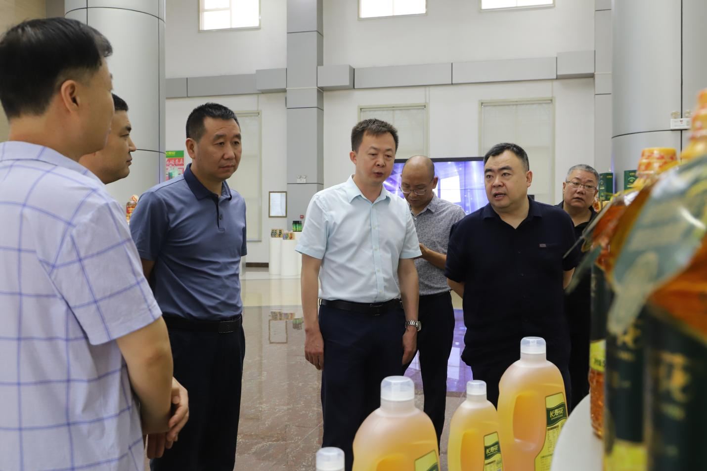 在長壽花食品綠色產(chǎn)業(yè)基地,考察領(lǐng)導(dǎo)詳細了解企業(yè)生產(chǎn)經(jīng)營、項目建設(shè)、技術(shù)創(chuàng)新等情況,并著重就農(nóng)產(chǎn)品加工全產(chǎn)業(yè)鏈建設(shè)與企業(yè)領(lǐng)導(dǎo)做深入交流。