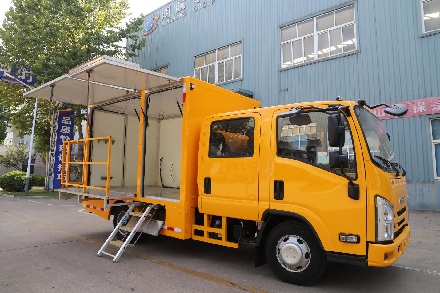 近日,山東三星集團(tuán)明航汽車再出新品,自主研發(fā)兼具極致輕量化與操作便利性于一體的電力系統(tǒng)多功能廂車,可實(shí)現(xiàn)電能儲(chǔ)備、野外檢修、遠(yuǎn)程辦公等多功能作業(yè)。