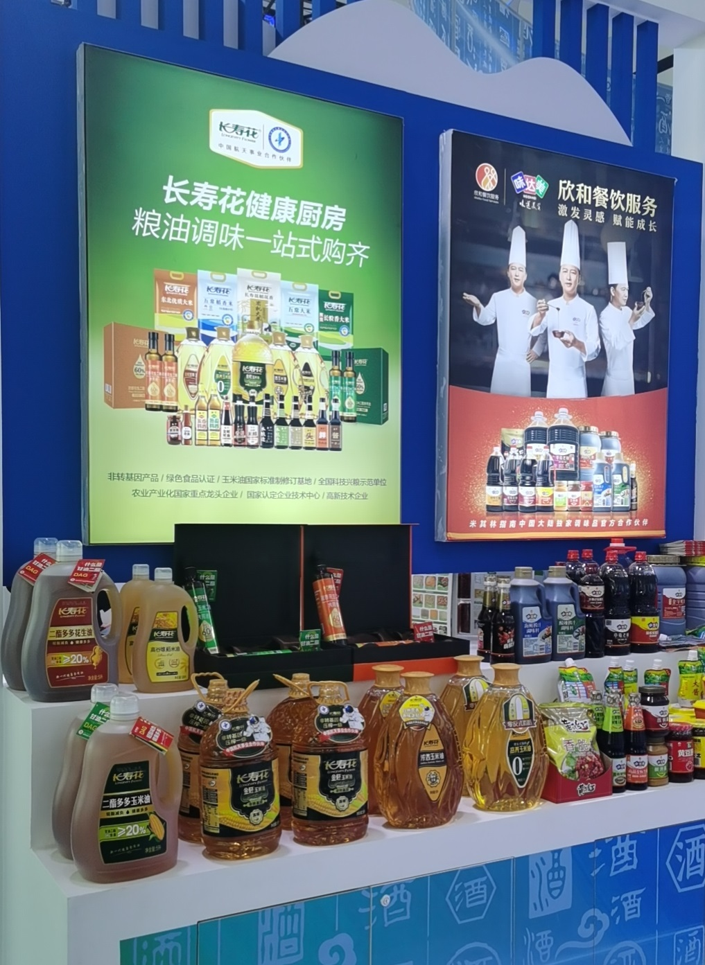 在長壽花食品展區(qū),長壽花二酯系列食用油、長壽花濃香玉米油、長壽花零反式脂肪高養(yǎng)玉米油、長壽花高谷維稻米油、長壽花金胚玉米油等高端產品以簡約大方的排布方式呈現(xiàn),吸引眾多觀展人員駐足咨詢了解、商洽合作,同時也吸引了閃電新聞的記者前來采訪。