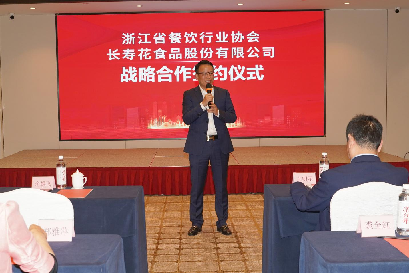11月8日,浙江省餐飲行業(yè)協(xié)會(huì)與長壽花食品戰(zhàn)略合作簽約儀式在浙江桐廬舉行,雙方將在品質(zhì)糧油集采、供應(yīng)鏈協(xié)同搭建等領(lǐng)域展開深入合作,攜手開啟健康餐飲高質(zhì)量發(fā)展的合作新篇章。浙江省餐飲行業(yè)協(xié)會(huì)副會(huì)長、團(tuán)餐委理事長余雄飛,副會(huì)長戈掌根,長壽花食品董事長、總經(jīng)理王明星,營銷總監(jiān)任在順,以及浙江省餐飲行業(yè)協(xié)會(huì)團(tuán)餐委委員單位及成員企業(yè)出席活動(dòng)。