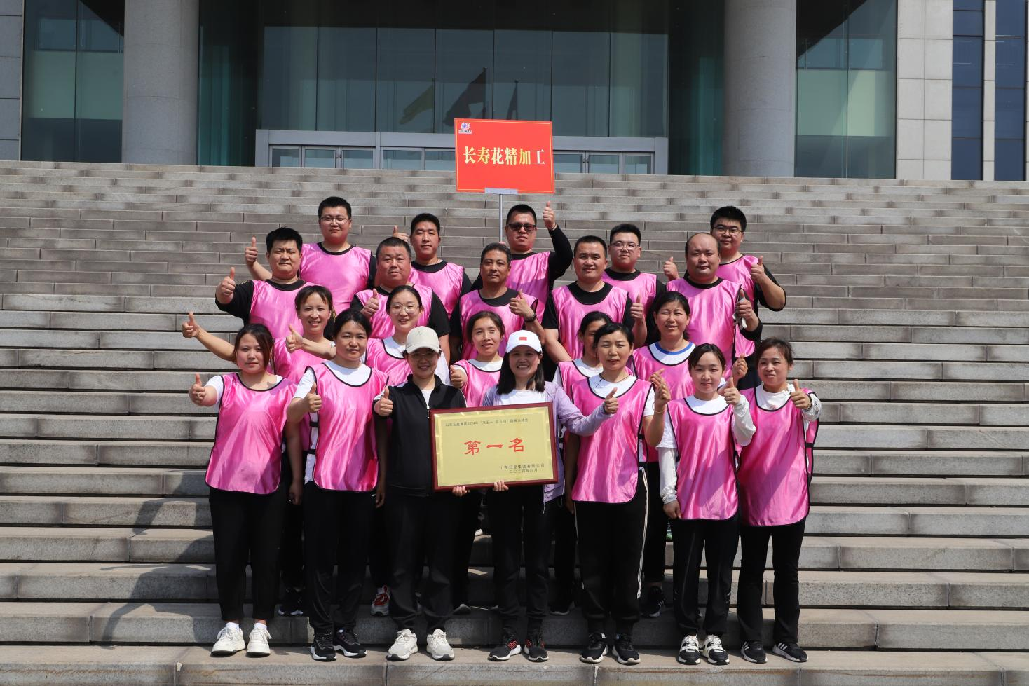 經(jīng)過(guò)一上午的比拼,趣味運(yùn)動(dòng)會(huì)圓滿結(jié)束。長(zhǎng)壽花精加工事業(yè)部代表隊(duì)獲得第一名,長(zhǎng)壽花初加工事業(yè)部代表隊(duì)獲得第二名,集團(tuán)機(jī)關(guān)代表隊(duì)獲得第三名,集團(tuán)副總經(jīng)理韓延庭為優(yōu)勝團(tuán)隊(duì)頒獎(jiǎng)。大家集體合影,盡享榮耀時(shí)刻。