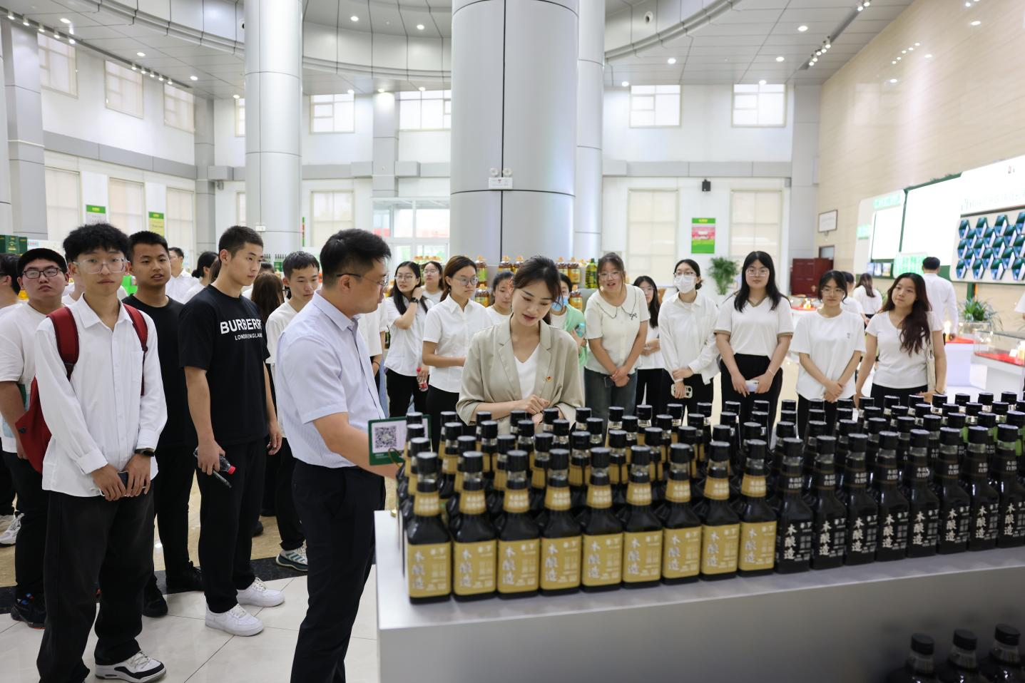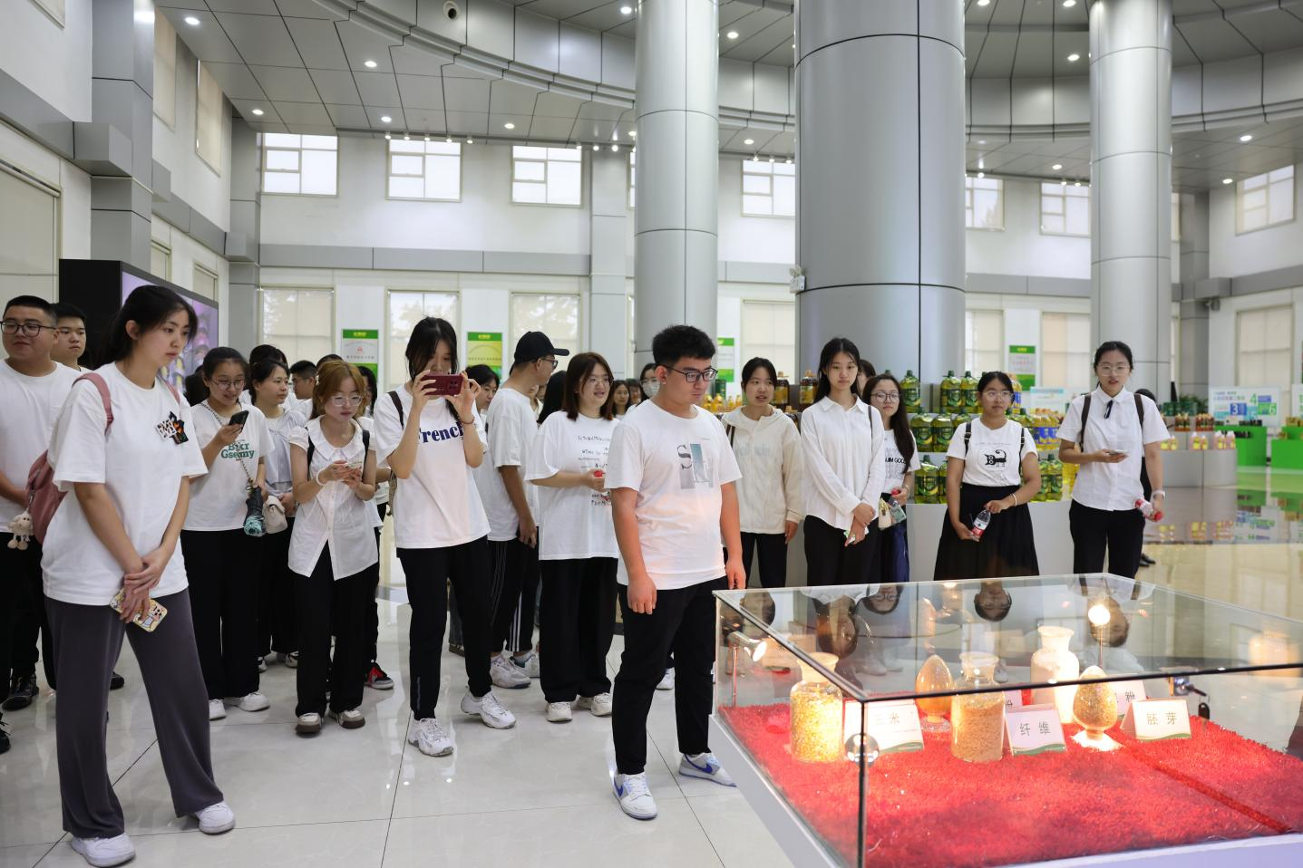 在長壽花食品綠色生產(chǎn)基地,大學(xué)生們先后到產(chǎn)品展廳、全自動灌裝包裝生產(chǎn)線實地參觀,認真聽取企業(yè)產(chǎn)業(yè)布局、新產(chǎn)品研發(fā)、健康廚房產(chǎn)業(yè)鏈構(gòu)建等相關(guān)情況介紹。