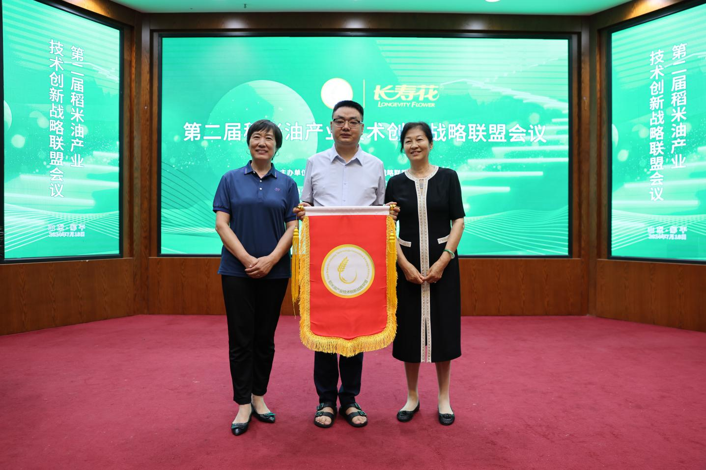 大會(huì)同時(shí)舉辦了第三屆稻米油產(chǎn)業(yè)技術(shù)創(chuàng)新戰(zhàn)略聯(lián)盟會(huì)議授旗儀式,張桂鳳及長壽花食品、第三屆聯(lián)盟會(huì)議承辦單位代表完成旗幟轉(zhuǎn)交,從山東到湖北,從黃河之濱到長江之畔,在場與會(huì)領(lǐng)導(dǎo)嘉賓共同見證了授旗使命的傳遞和接力。