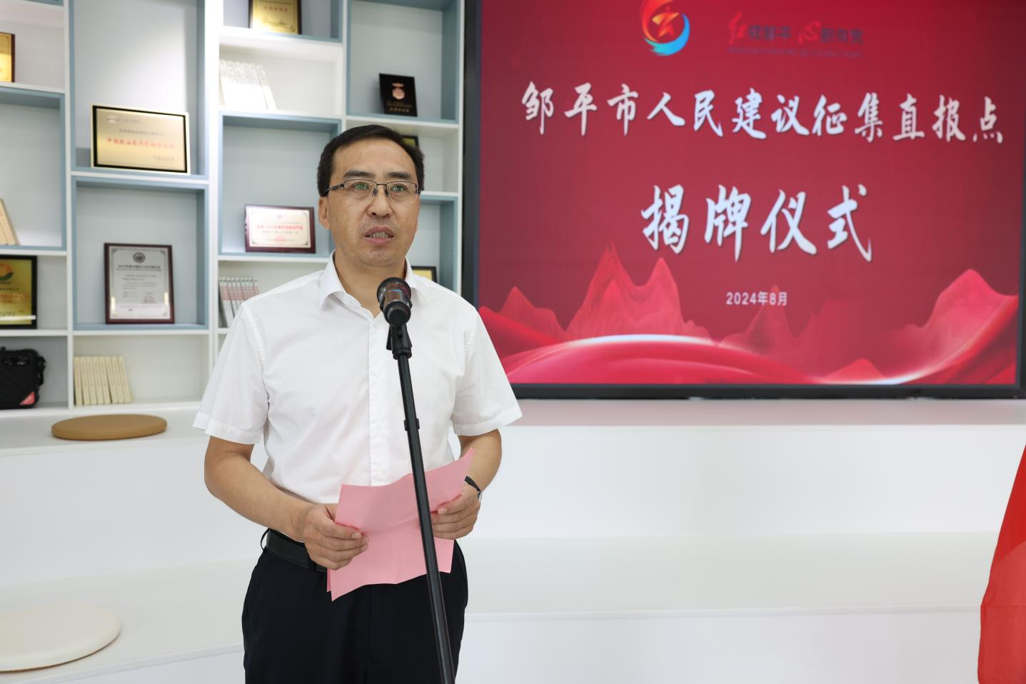 8月7日,鄒平市人民建議征集直報點揭牌儀式在山東三星集團文化中心舉行,鄒平市委社會工作部部長、市委“兩新”工委書記宋明科,市委組織部副部長張金平,韓店鎮(zhèn)黨委副書記、鎮(zhèn)長劉慎鵬,鎮(zhèn)黨委副書記張先亮,山東三星集團黨總支書記王明峰及各鎮(zhèn)街代表參加活動。