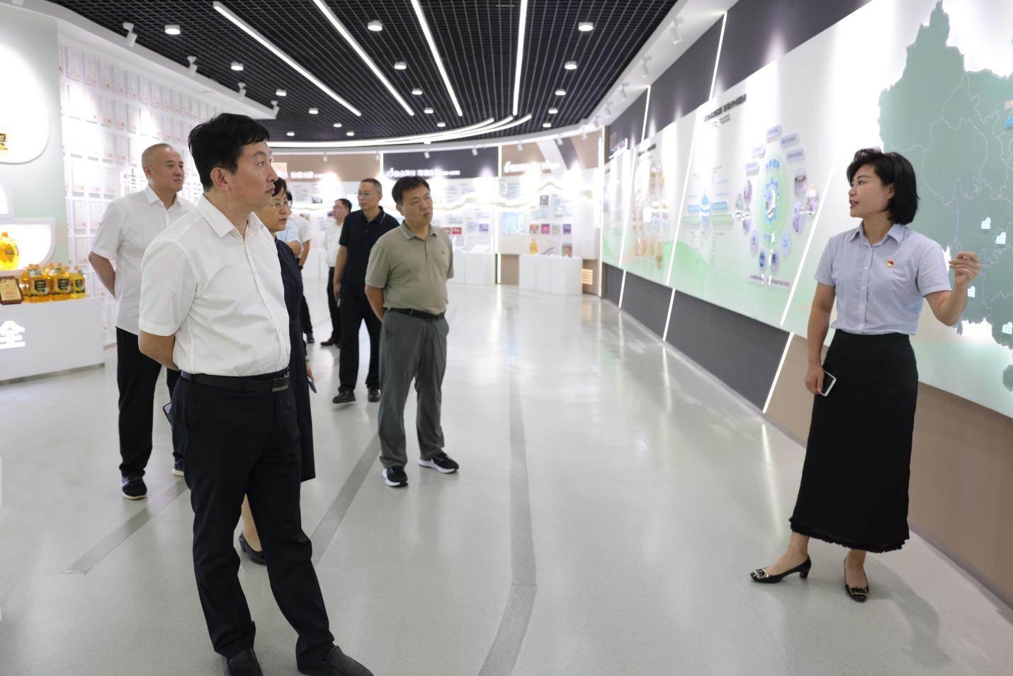 在山東三星集團(tuán)文化中心,調(diào)研組詳細(xì)了解集團(tuán)產(chǎn)業(yè)架構(gòu)、市場(chǎng)布局、重點(diǎn)糧油項(xiàng)目推進(jìn)及農(nóng)產(chǎn)品產(chǎn)業(yè)鏈延伸升級(jí)等情況。