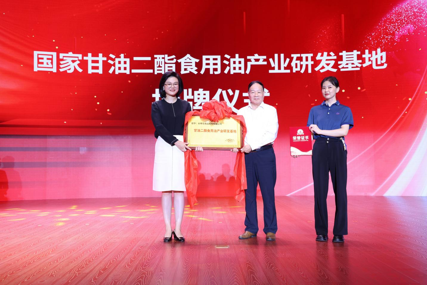 大會(huì)同期舉行了“國(guó)家甘油二酯食用油產(chǎn)業(yè)研發(fā)基地”授牌儀式。山東三星集團(tuán)董事長(zhǎng)、總裁王亞群從中國(guó)糧油學(xué)會(huì)油脂分會(huì)會(huì)長(zhǎng)何東平手中接過授牌,這也是繼“國(guó)家玉米油產(chǎn)業(yè)研發(fā)基地”后,長(zhǎng)壽花獲得的又一國(guó)字號(hào)“產(chǎn)業(yè)研發(fā)基地”金字招牌。