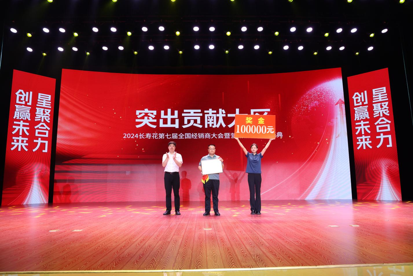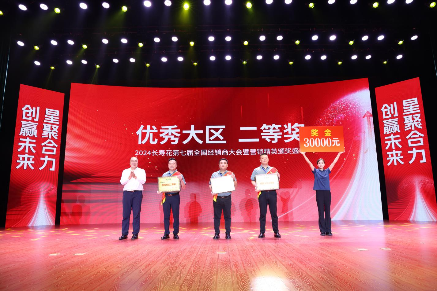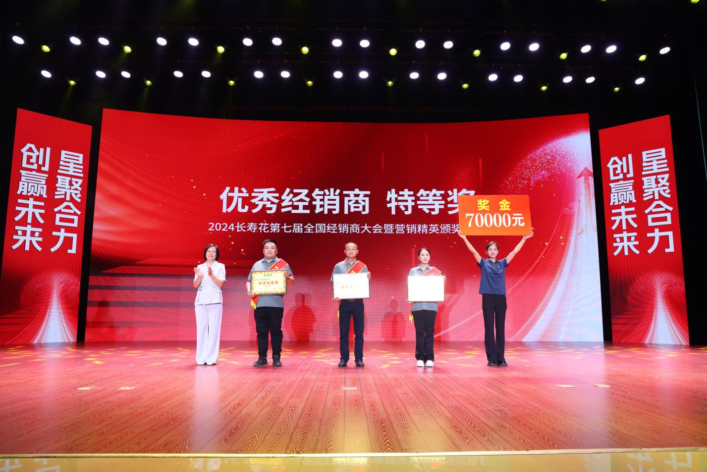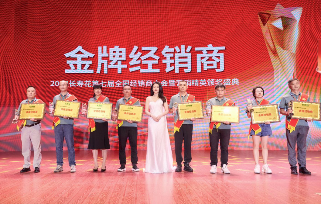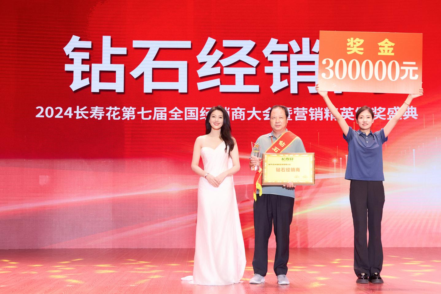 頒獎(jiǎng)盛典上,長(zhǎng)壽花食用油代言人高圓圓為金牌經(jīng)銷商和鉆石經(jīng)銷商頒獎(jiǎng),并現(xiàn)場(chǎng)溫馨互動(dòng)。