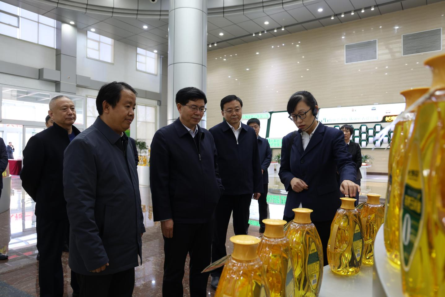 11月22日,山東農(nóng)業(yè)大學(xué)黨委副書記、校長冷暢儉一行來山東三星集團調(diào)研,濱州市副市長、市工商聯(lián)主席杜玉杰,濱州市農(nóng)業(yè)科學(xué)院黨組書記、院長趙福江,鄒平市委副書記、市長張謙,市委副書記劉德軍,鄒平市農(nóng)業(yè)農(nóng)村局黨組書記、局長王奎,韓店鎮(zhèn)黨委副書記、鎮(zhèn)長劉慎鵬陪同活動,山東三星集團黨總支書記王明峰,長壽花食品董事長、總經(jīng)理王明星接待調(diào)研領(lǐng)導(dǎo)一行。