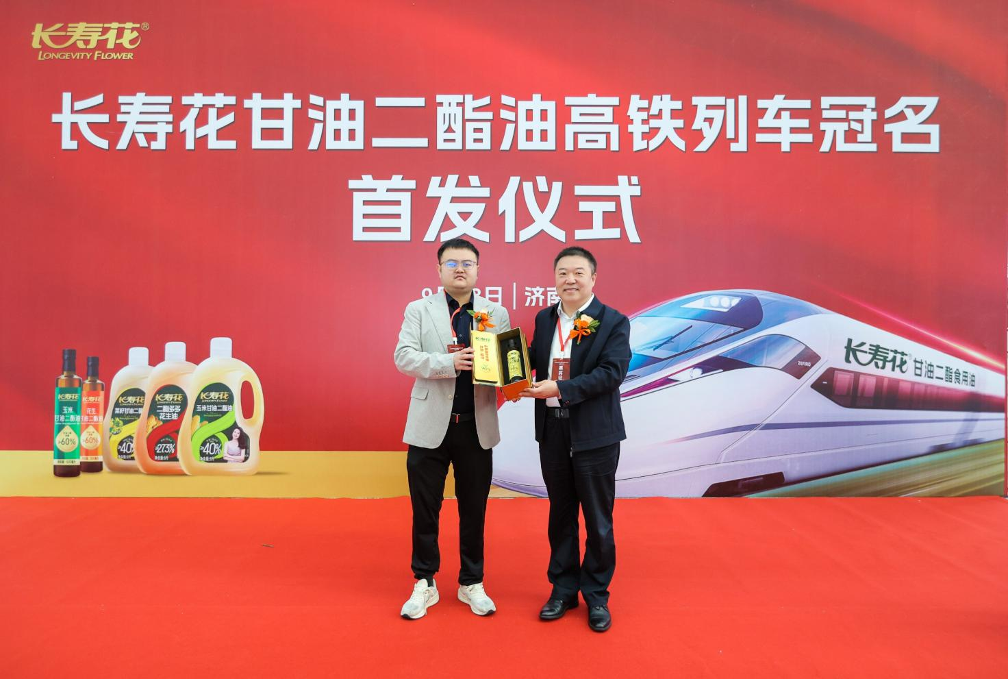 長(zhǎng)壽花食品副總經(jīng)理、營(yíng)銷總監(jiān)任在順高鐵首發(fā)儀式上發(fā)表致辭,表示:“高鐵代表著中國(guó)速度、中國(guó)品質(zhì),這與長(zhǎng)壽花品牌追求卓越、引領(lǐng)創(chuàng)新的理念高度契合。長(zhǎng)壽花甘油二酯食用油冠名高鐵列車,將借助高鐵這一強(qiáng)大的傳播平臺(tái),把我們的健康理念和優(yōu)質(zhì)產(chǎn)品傳遞給更多的人。讓中國(guó)高鐵、中國(guó)速度,滿載著長(zhǎng)壽花讓全民吃上健康二酯油的戰(zhàn)略愿景,馳騁在祖國(guó)大地上,將長(zhǎng)壽花甘油二酯油的健康帶給全國(guó)消費(fèi)者。”