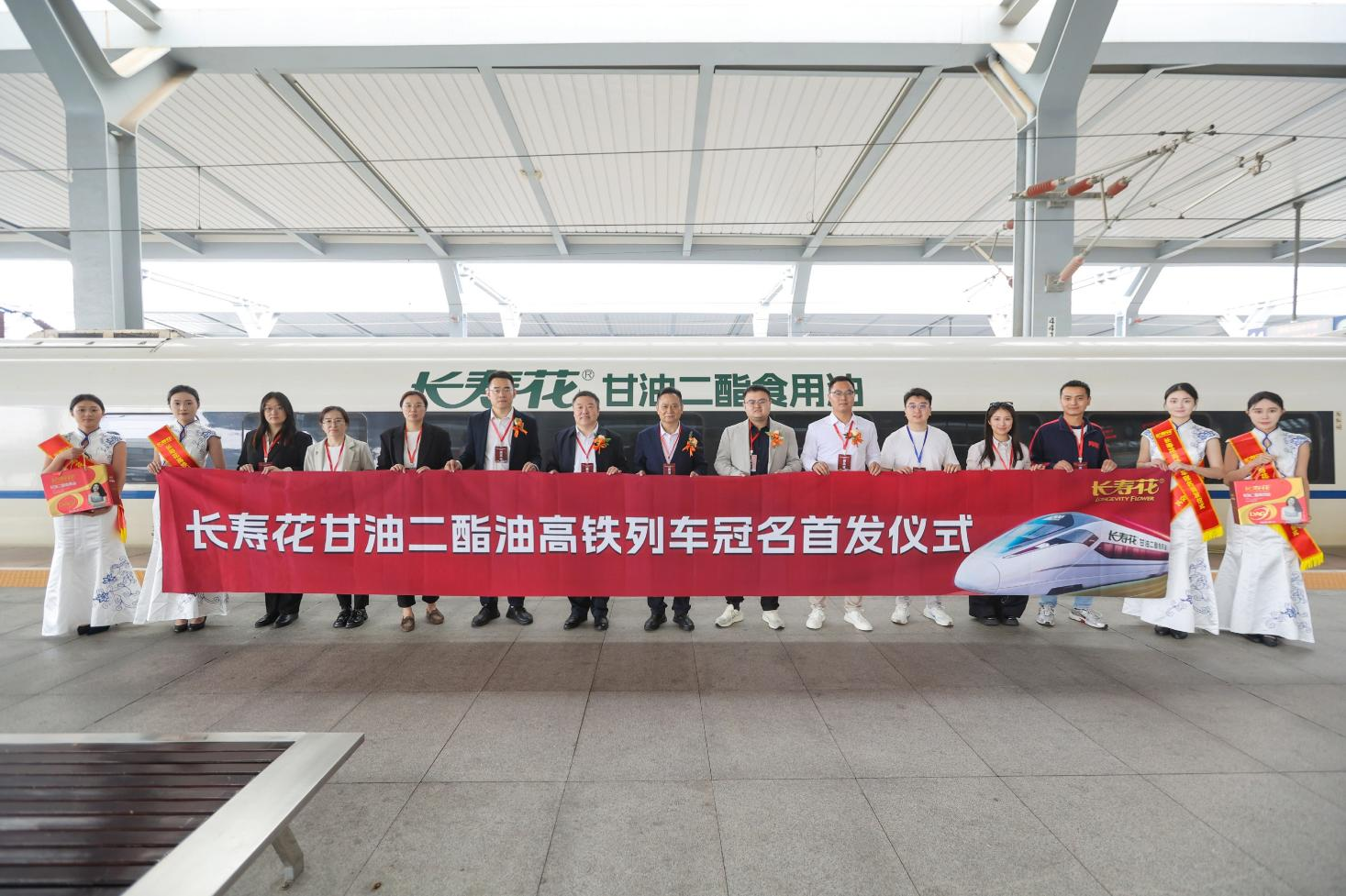 長(zhǎng)壽花食品股份有限公司董事長(zhǎng)、總經(jīng)理王明星,副總經(jīng)理、營(yíng)銷總監(jiān)任在順,甘油二酯油事業(yè)部總監(jiān)明天,高鐵合作方領(lǐng)導(dǎo)等嘉賓親臨現(xiàn)場(chǎng),共同見(jiàn)證長(zhǎng)壽花甘油二酯食用油全新品牌之旅的盛大啟程。