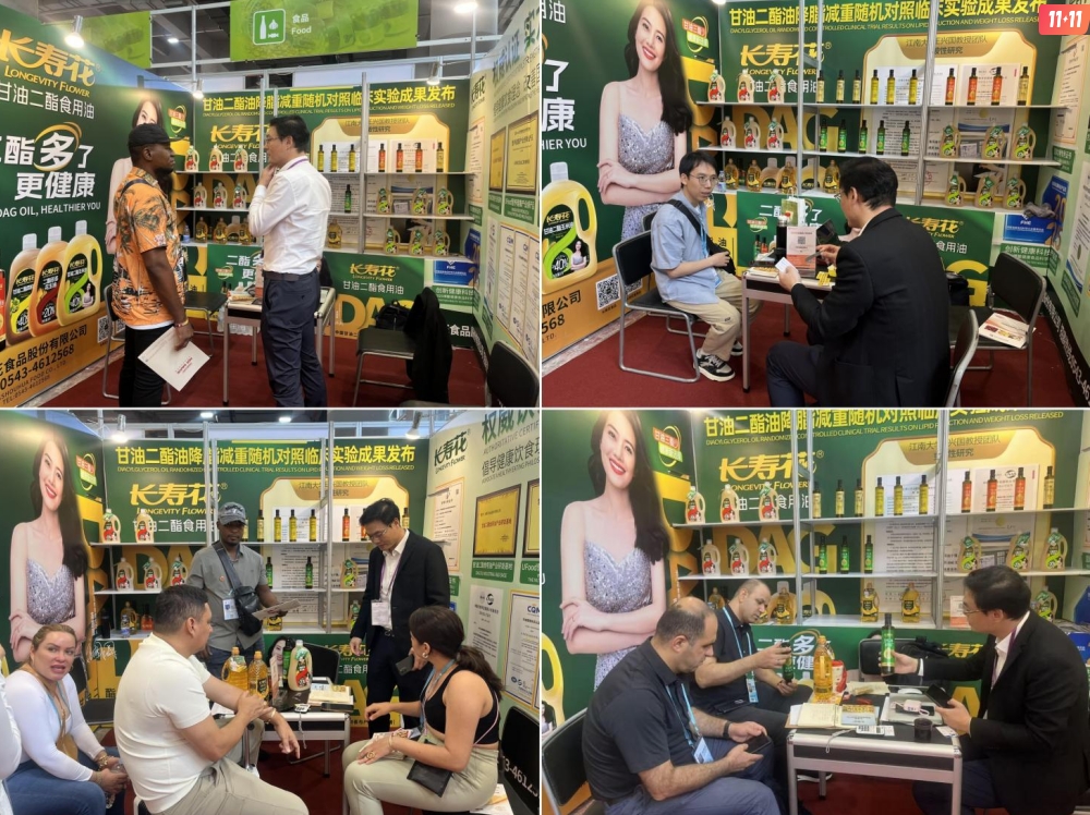 本屆展會(huì),長(zhǎng)壽花重點(diǎn)展示了以新一代健康功能性油脂——甘油二酯油系列及經(jīng)典金胚玉米油為代表的高端產(chǎn)品矩陣,全方位呈現(xiàn)出產(chǎn)品特色和品牌理念,生動(dòng)詮釋了“國(guó)民品牌、科技創(chuàng)新、品質(zhì)護(hù)航、長(zhǎng)壽花開”的獨(dú)特魅力和品牌價(jià)值,吸引眾多外商客戶駐足。